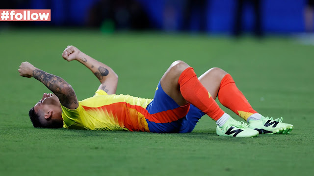 In the 39th minute, amidst a sea of yellow jerseys and roaring fans, Jefferson Lerma leaped high and headed James RodrĂguez’s corner into the net. His goal sent the Colombian supporters into a frenzy and put Uruguay on the back foot.