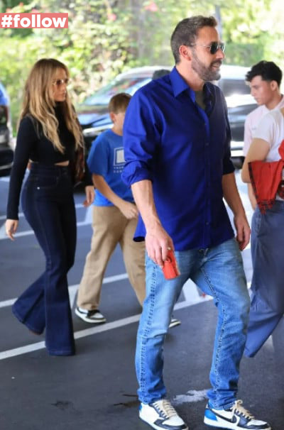 Lopez, 55, looked stunning in a black long-sleeved crop top and flared jeans, with her engagement ring prominently displayed on her pinky. Affleck, 52, kept it casual in a blue button-down shirt and jeans, paired with Nike sneakers. The couple also shared a serious conversation outside the venue, hinting at unresolved emotions.